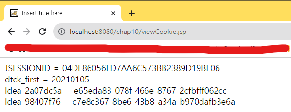 그리고 책에 예시처럼 실제 경로를 다르게 하여 비교해보니 세션에 대한 키 값이 저장된 브라우저의 쿠키 값이 달랐다.