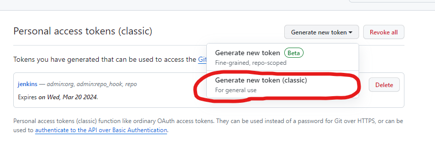 4. Generate new token을 눌러 토큰 발급 화면으로 이동한다.